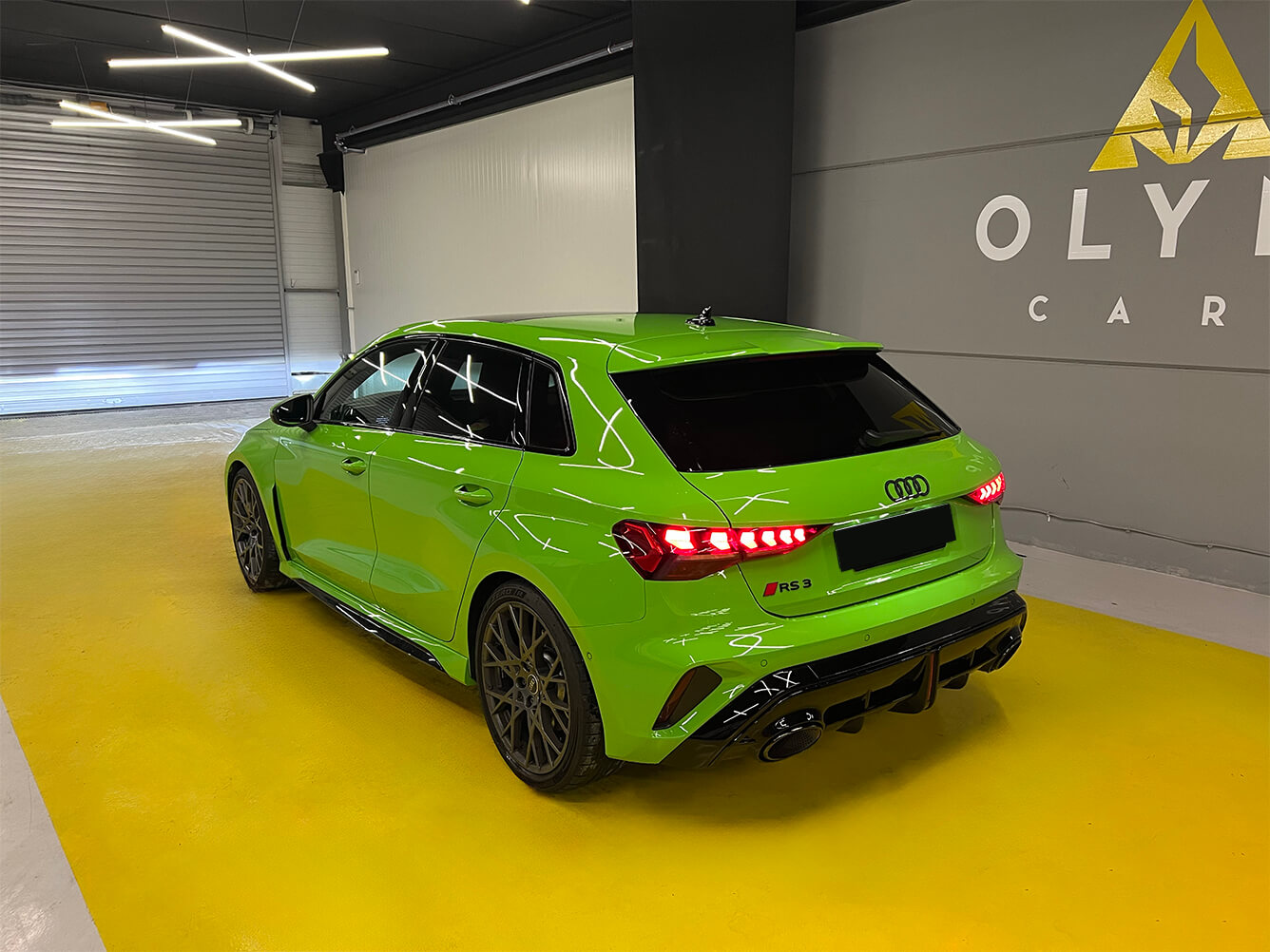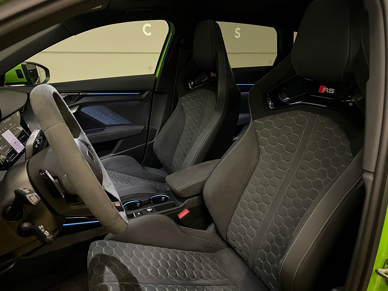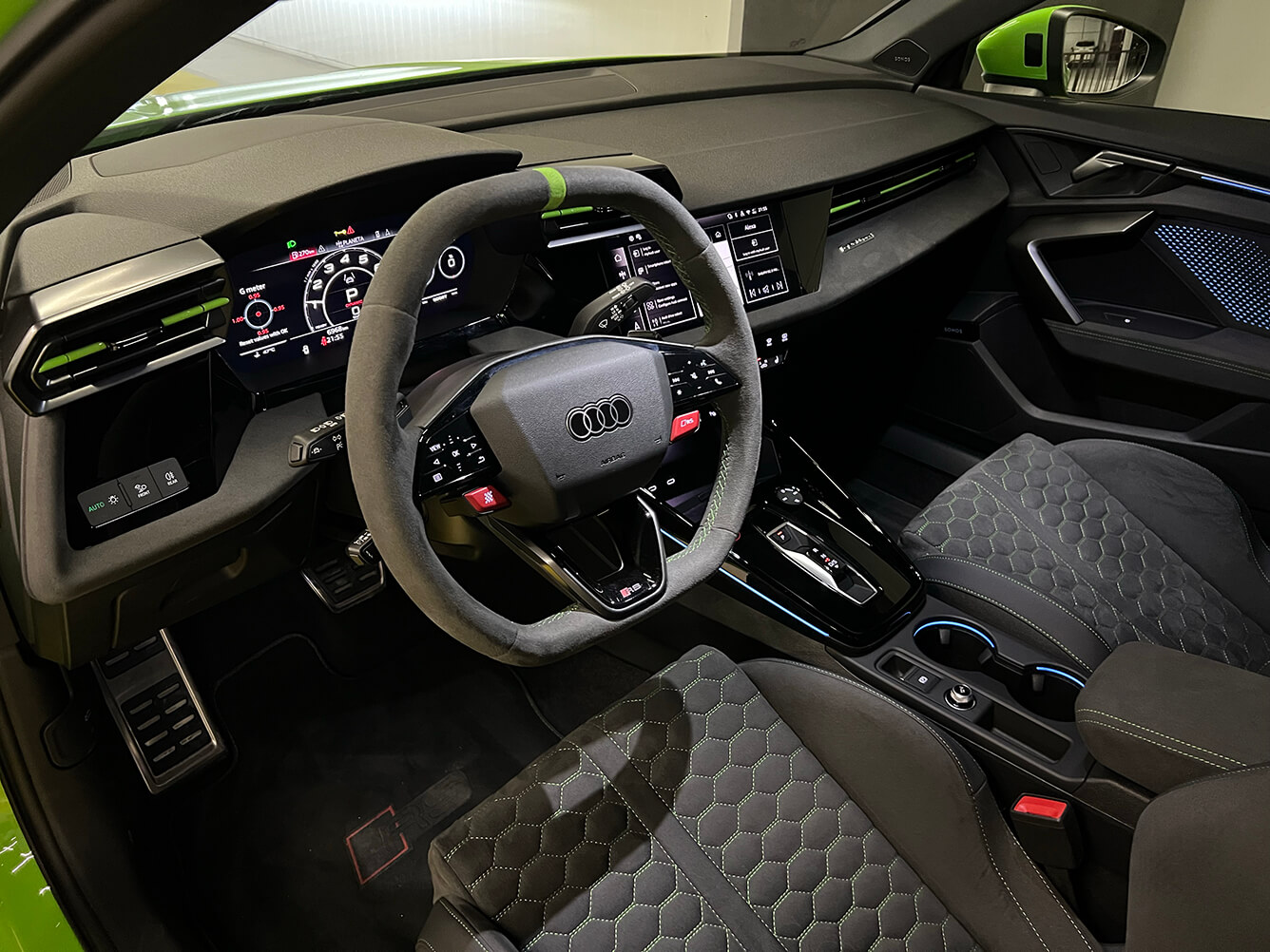 The new Audi RS 3 offers driving dynamics on the highest level and optimum values in its segment. With a 400-hp five-cylinder engine that generates 500 Nm of torque, the car ensures quick acceleration and highly emotional sound. This is the first Audi ever to include the RS torque splitter, which variably distributes the torque between the rear wheels. In terms of looks, the RS 3 demonstrates its sporty genes with a widened body, the RS sport exhaust system and cockpit displays resembling those used in motorsport. From 0 to 100 km/h in 3.8 seconds, up to 290 km/h top speed, RS Torque Splitter, semi slicks, and specific RS driving modes – the new Audi RS 3 offers driving dynamics of the highest caliber and the best numbers in its segment. The standard RS sports suspension features newly developed shock absorbers and a valve system both specific to the RS 3. The valves ensure that the shock absorbers exhibit a particularly sensitive response as part of the rebound and compression characteristics. This allows the suspension to respond to the respective driving situation even faster and more effectively. The RS sport suspension plus with adaptive damper control is available as an option. It continuously and individually adjusts each shock absorber to the road conditions, the driving situation, and the mode selected in Audi drive select. The three characteristic curves comfortable, balanced, and sporty provide a clearly perceptible spread of the shock absorber characteristics.