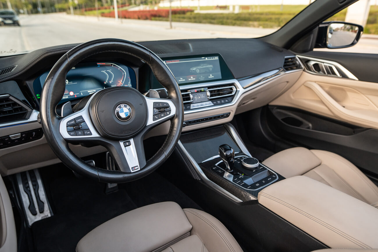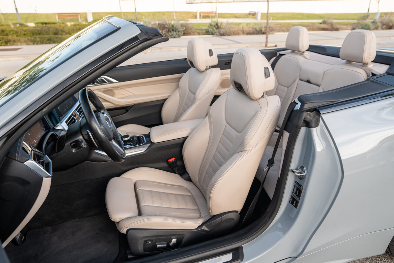The all-new BMW 4 Series Cabrio amazing agility, owing to its wide stance and low centre gravity, is accentuated even further by short overhangs and a new soft top roof that is 40% lighter than its predecessor. The open-air experience is also taken to the next level thanks to electric seats in Vernasca leather, 3-zone air conditioning and a new enhanced digital cockpit. Discover a driving experience that is all about going the long way round, wherever you’re heading. After its striking first impression, the new BMW 4 Series Cabrio comes to life with amazing details. Some are performance enhancing elements, such as the M Sport Suspension and Extended LED lights; others are style and comfort features, including the ambient lighting, the elegant light carpet and the acoustic windscreen; With so much to take in, people won’t know where to look first.